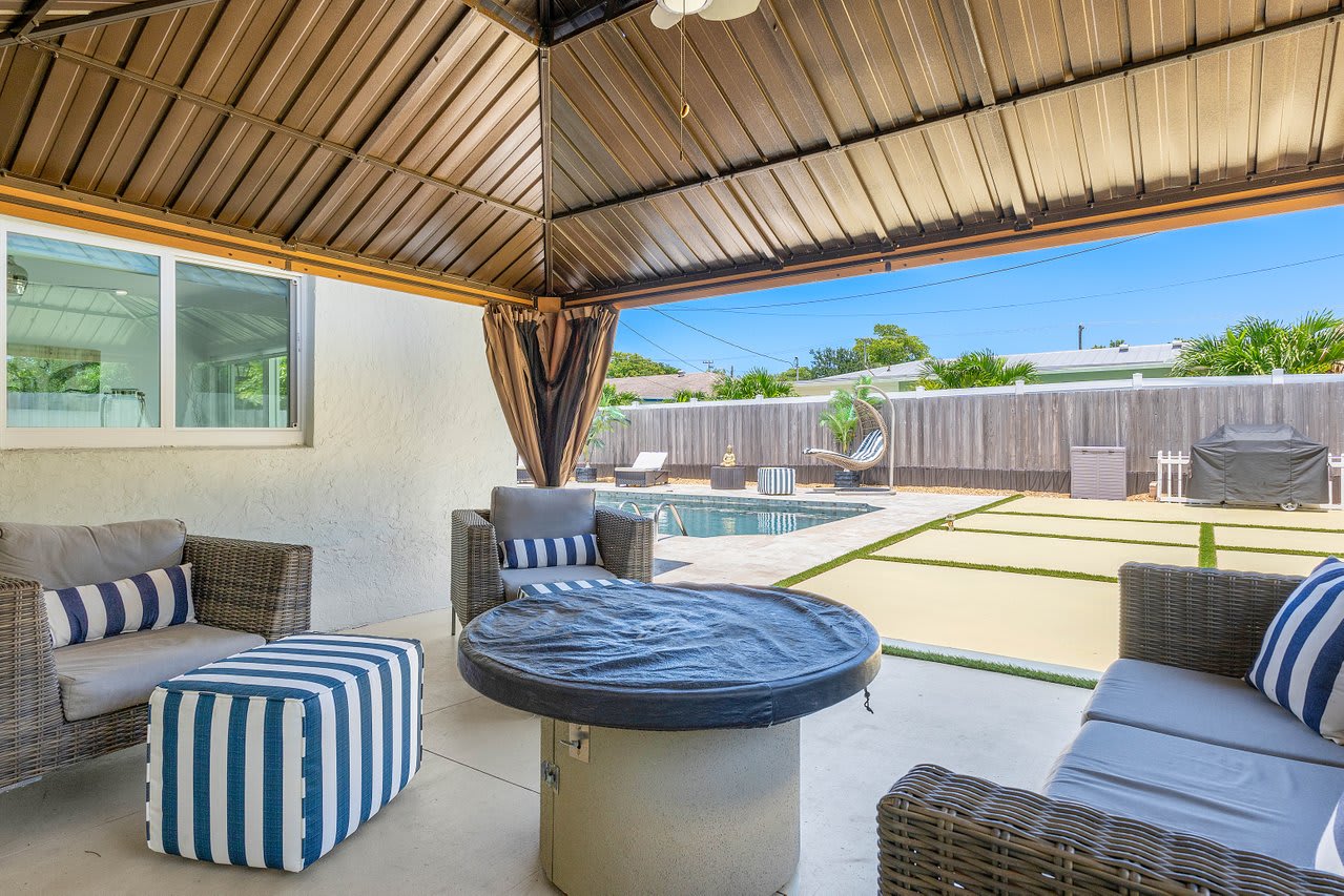 Welcome home to 2818 SW 5th Street, a 3bd/2.5ba exquisitely renovated single-story home located in the highly sought after no-HOA neighborhood of Chapel Hill in Boynton Beach, Florida. This home is tastefully loaded with everything one could want in a South Florida home, a perfect place to entertain and live. A Chef's dream in the kitchen with a large island, Pertazzo natural gas range, Bosch appliances and wine cooler. Views of the pool from the large sliding glass door in the primary bedroom, massive walk in closet and gorgeous primary bathroom. Second bedroom also has direct access/views of the pool and en-suite bathroom. Expansive fully fenced (& Bufo toad protected to keep your furry family safe) backyard, inviting Pebble-Tec lined pool & outdoor shower in addition to wonderful shade space under the large gazebo to relax under. Metal roof, large impact windows/doors, Generac 24KW natural gas automatic standby generator, new AC, water filtration system, included outdoor natural gas grill & TESLA wall charger are a few more of the many features this home offers. The Chapel Hill neighborhood is a coveted, quiet, family and pet friendly neighborhood with it's very own Forest Hills Park. Very close to the beach, Downtown Delray Beach/Atlantic Ave, Downtown Boynton, many shopping options, adjacent to the Bethesda Hospital and easy I-95 access with a short 20 min. drive to PBI International Airport.